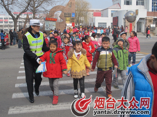 大众网烟台3月10日讯 (通讯员 王海艇 孙菁 记者 王宁) 2011年5月22日,招远交警女子护学中队成立,至今已经有近3年的时间了。为了让祖国未来的花朵茁壮成长,女警们用实际的行动履行着"全心全意为人民服务"的承诺,用自己的热情来点缀三月春光里的灿烂阳光,在护学岗上绽放着别样的风采。