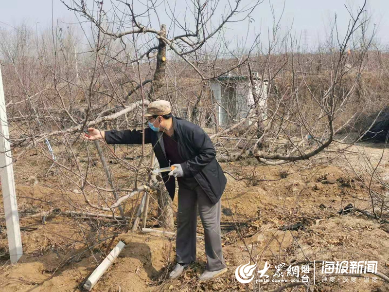 大众网·海报新闻烟台2月13日讯 (记者 薄晓娜 通讯员 盛宪学) 阳光暖人,处处生机。为了不误农时,在招远蚕庄镇柳杭村一处果园里,果农刘大哥正戴着口罩精心修剪着果树枝条。“我家种了10亩红富士,往年都是村合作社招呼社员一块统一修剪,集中几天就完工了,今年发生疫情,社员也不能聚集,我与村委会写申请后自己干,不能耽误管理。”