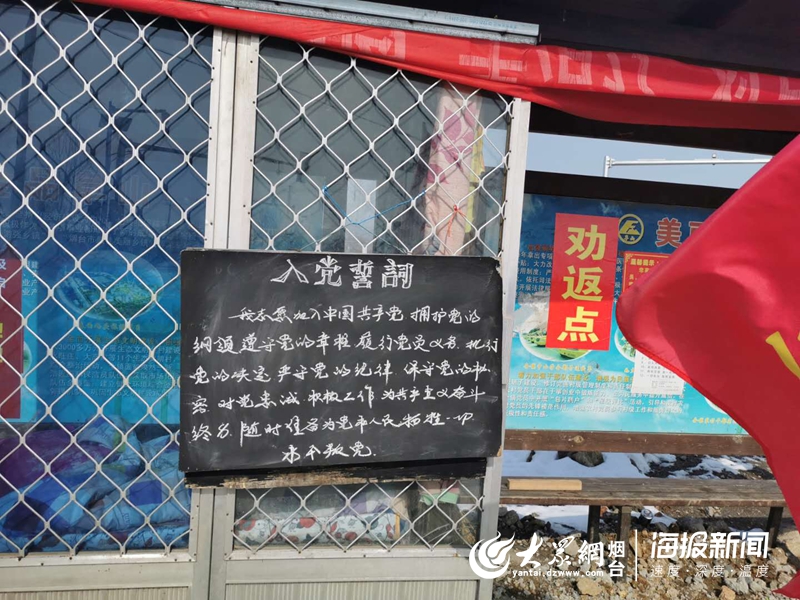 “我志愿加入中国共产党,拥护党的纲领,遵守党的章程,履行党员义务,执行党的决定......”2月16日,招远市阜山镇峰山后村卡口值班党员在清扫完卡口积雪后,重温了入党誓词。卡口值班党员冯书忠说:“以这种形式开展主题党日活动还真是第一次,扫完雪后身上热乎乎的,入党宣誓以后觉得有点热血沸腾了,挺激动的。”卡口值班没有党旗,但是几位党员商量了一下,最终决定面向村党支部办公室的方向,党旗在心中,宣誓无论在哪都要庄严。