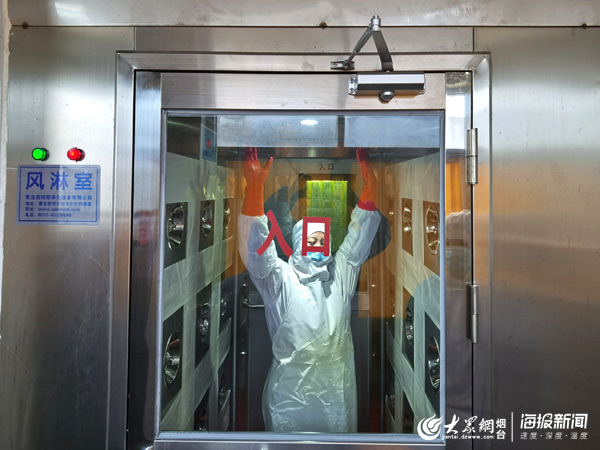 “全副武装”的工人进入工作区之前,需要使用粘毛器粘去工作服上的浮尘毛发等杂物,甚至连睫毛和眉毛都要粘一下。然后进入风淋室,360°吹风消毒去杂物。之后进入第二消毒区,经过6步洗手消毒之后,才可以正式进入工作区。