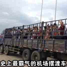 封面:坐着卡车乘飞机,“飞”一般的感觉!15日,网友吐槽黑龙江伊春机场,用卡车作摆渡车接送乘客(图)。该机场管理集团称,由于连续强降雨,致机场衔接交汇路段大面积积水,机场为保证旅客顺利成行,租用大卡车,所有航班均正点运行。网友:“摆渡车”拉风是拉风,只是想确定下,这车之前不是拉牲口的吧?(中新网)