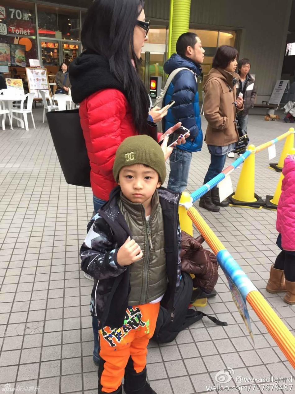 张柏芝带两子日本游玩 Lucas蹦床小Q长高