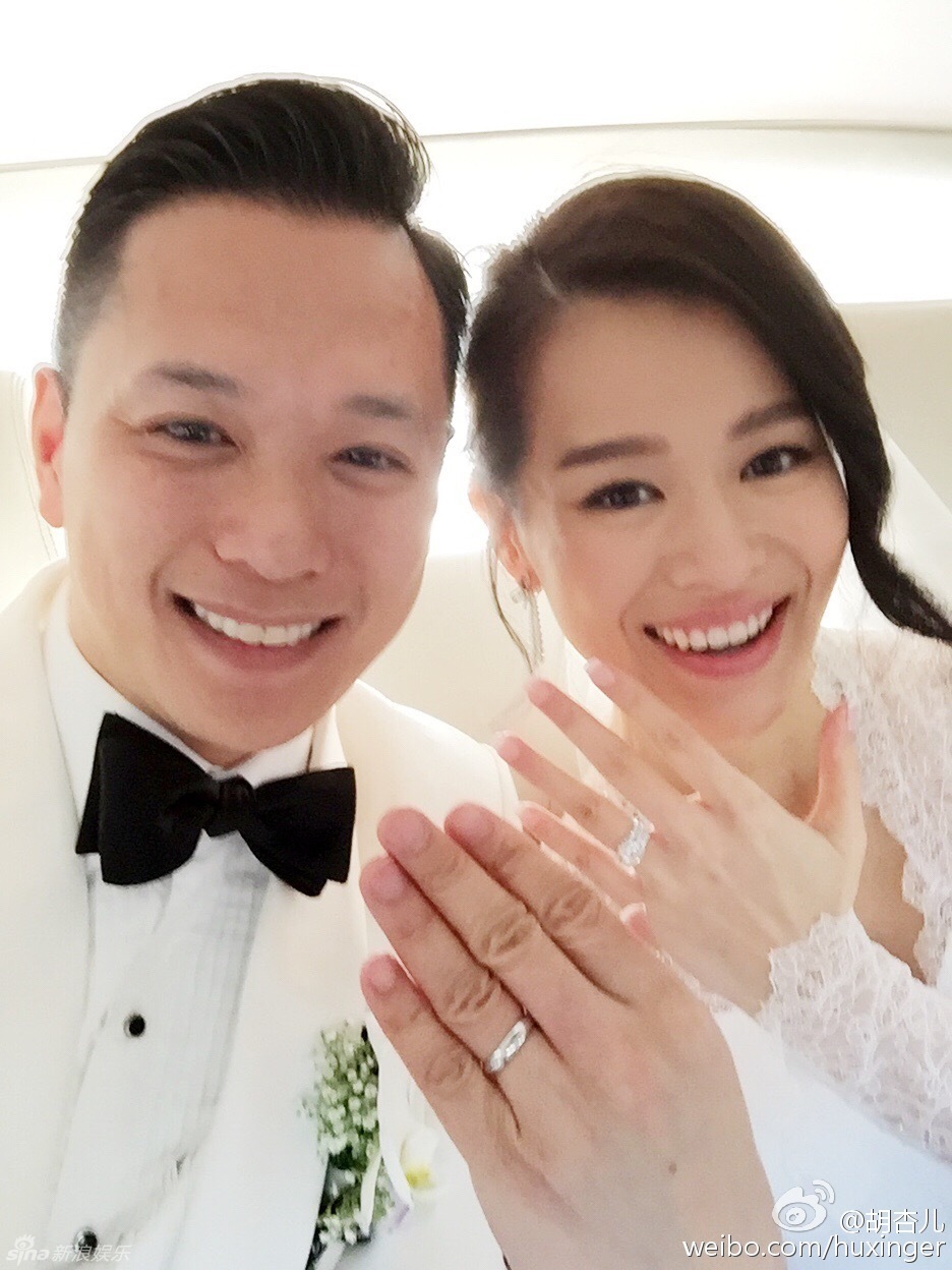 胡杏儿难忘婚礼晒幸福 与老公对嘴热吻