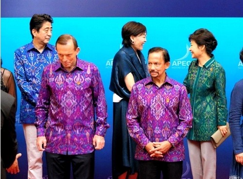 国际在线专稿:据日本《朝日新闻》10月8日报道,7日,参加亚太经济合作组织(APEC)会议的各国领导人进行纪念留影时,日本首相安倍晋三的夫人安倍昭惠与韩国总统朴槿惠握手并交谈。