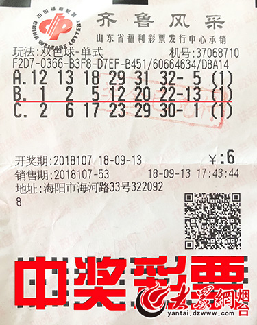 海阳彩友6元击中二等奖 与一等奖只差一行