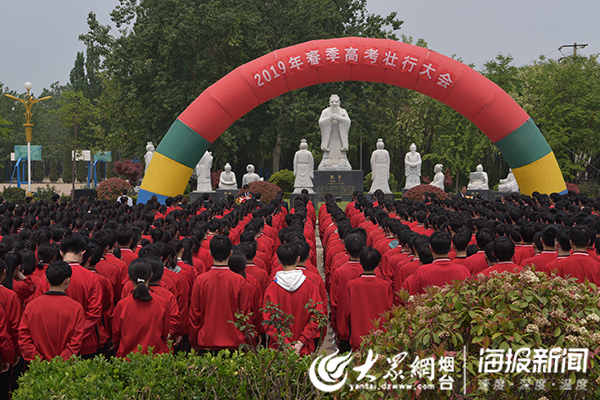 大众网烟台·海报新闻5月11日讯 (通讯员 郝东玲 王政杰) 5月10日上午,烟台市南山职业技术学校、东海外国语学校高中全体师生齐聚先圣孔子及其十哲雕像前,举行2019年春季高考壮行大会,为即将奔赴烟台考场,参加春季高考的2000多名高三学子加油鼓劲,助威壮行。南山教育集团副总裁、烟台市南山职业技术学校校长赵仁溟,烟台市南山职业技术学校副校长解恒福、董良山、曹金凤及各位校级领导和科主任等出席大会,烟台南山学院常务副院长隋树林作为特邀嘉宾出席。