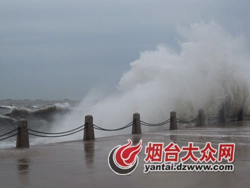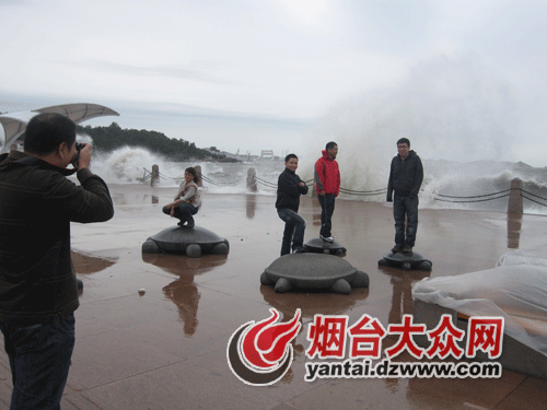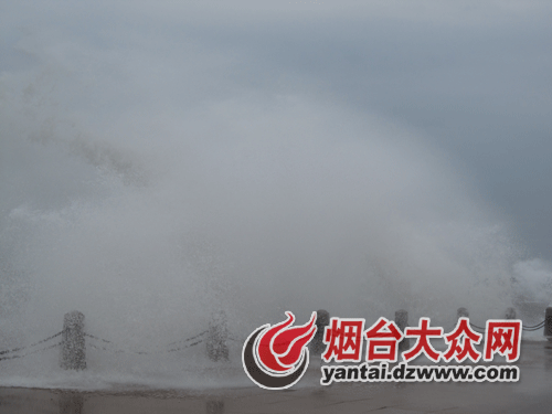 17日上午十点左右,记者在烟台滨海广场看到,远处海面一排排巨浪以排山倒海之势,涌向高大的水泥护堤,发出一阵阵轰响,掀起冲天浪花,卷起“千堆雪”,蔚为壮观。恶劣的天气并没有阻挡游客们观海的脚步,每当海上巨浪冲来,一些年轻人勇敢地站到离海岸较近的地方,让水花洒在自己身上,感受大自然带来的清凉,人群中不时传来阵阵惊呼声。“太壮观太美了,我要发到微博上,让我北京的同事羡慕羡慕。”从北京来烟台出差的小王兴奋地说。